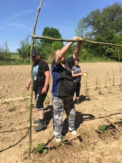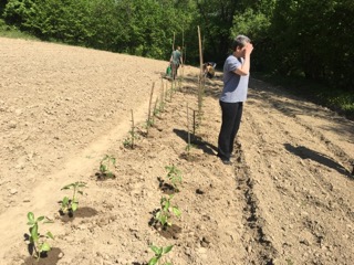 Celé dopoludnie sme strávili na našom poličku, kde sme vysadili 250kg zemiakov, kukuricu, hrášok, fazuľu, redkvičku, cibuľku cuketu a hokkaido. Počasie nám prialo, bolo krásne slnečno a opálené tváre našich klientov sú toho dôkazom. Sadenie bolo veľmi náročné, ale radosť z budúcej úrody ich motivovala k aktívnej činnosti. Naozaj boli veľmi pracovití. Za dnešný deň im patrí veľké poďakovanie a na záver ich čakala aj sladká odmena.