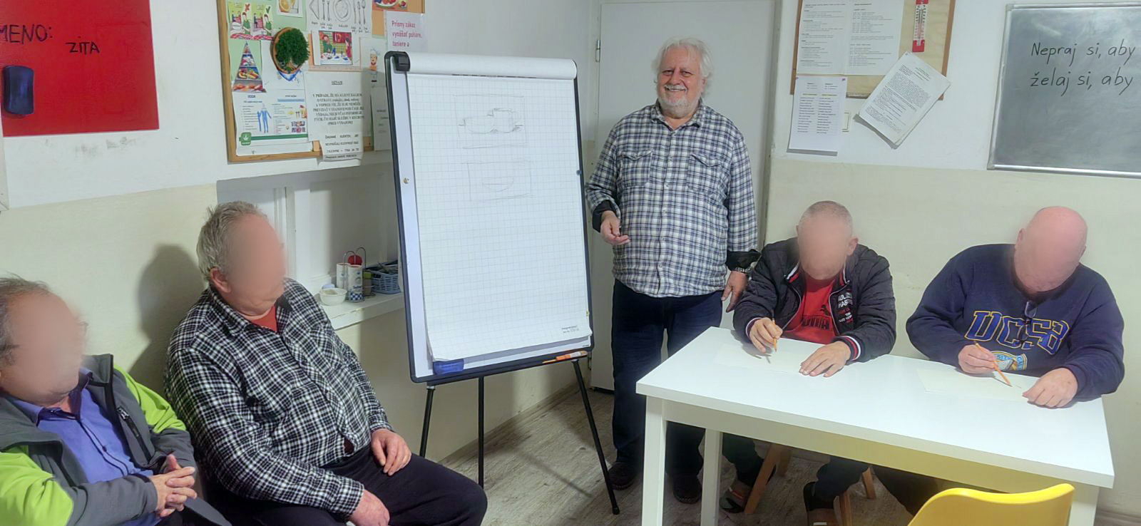 Od 2.1.2024 pravidelne štyrikrát mesačne realizujeme arteterapiu pre našich klientov. Prostredníctvom nej sa usilujeme pomôcť im vyrovnať sa so svojou minulosťou, prekonať prežité traumy a napredovať v osobnostnom rozvoji. Arteterapiu u nás vedie skúsený špeciálny pedagóg-psychopéd, ktorý má dlhoročnú prax v oblasti arteterapie a artefiletiky s rôznymi cieľovými skupinami-deťmi, dospelými i seniormi.
