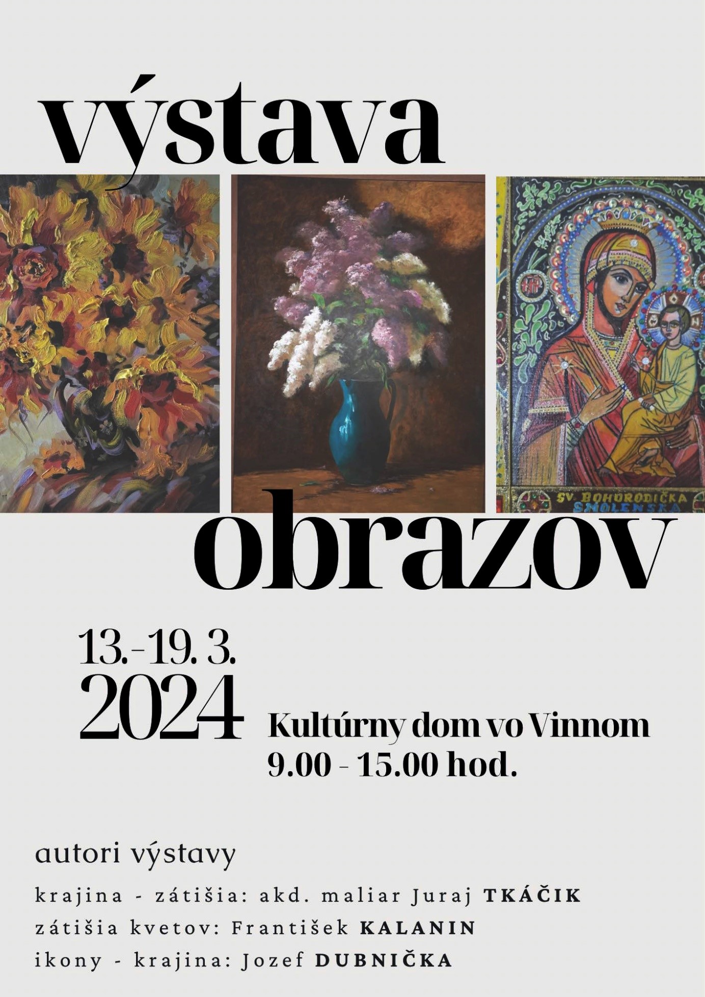 V piatok 19.3.2024 sa v dopoludňajších hodinách stretli naši klienti v kultúrnom dome v obci Vinné, aby sa zúčastnili na výstave obrazov akad. maliara Juraja Tkáčika, Jozefa Dubničku a Františka Kalanina. Cieľom nášho stretnutia bolo vnímať umelecké diela, porovnávať rôzne techniky a námety komornej maľby, ako aj srdečne debatovať s autormi vystavaných diel. Našim úsilím je snaha pomáhať klientom a poskytovať im radosť pôsobením umenia.