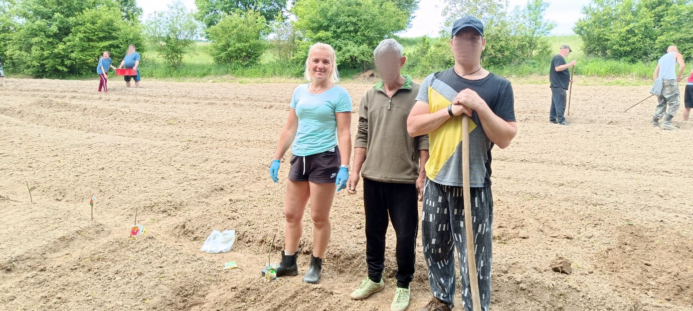 S klientmi nášho zariadenia sme sa jedno pekné ráno pustili do záhradky. Čakalo nás prichystané poorané políčko, kde sme mohli začať so sadením.