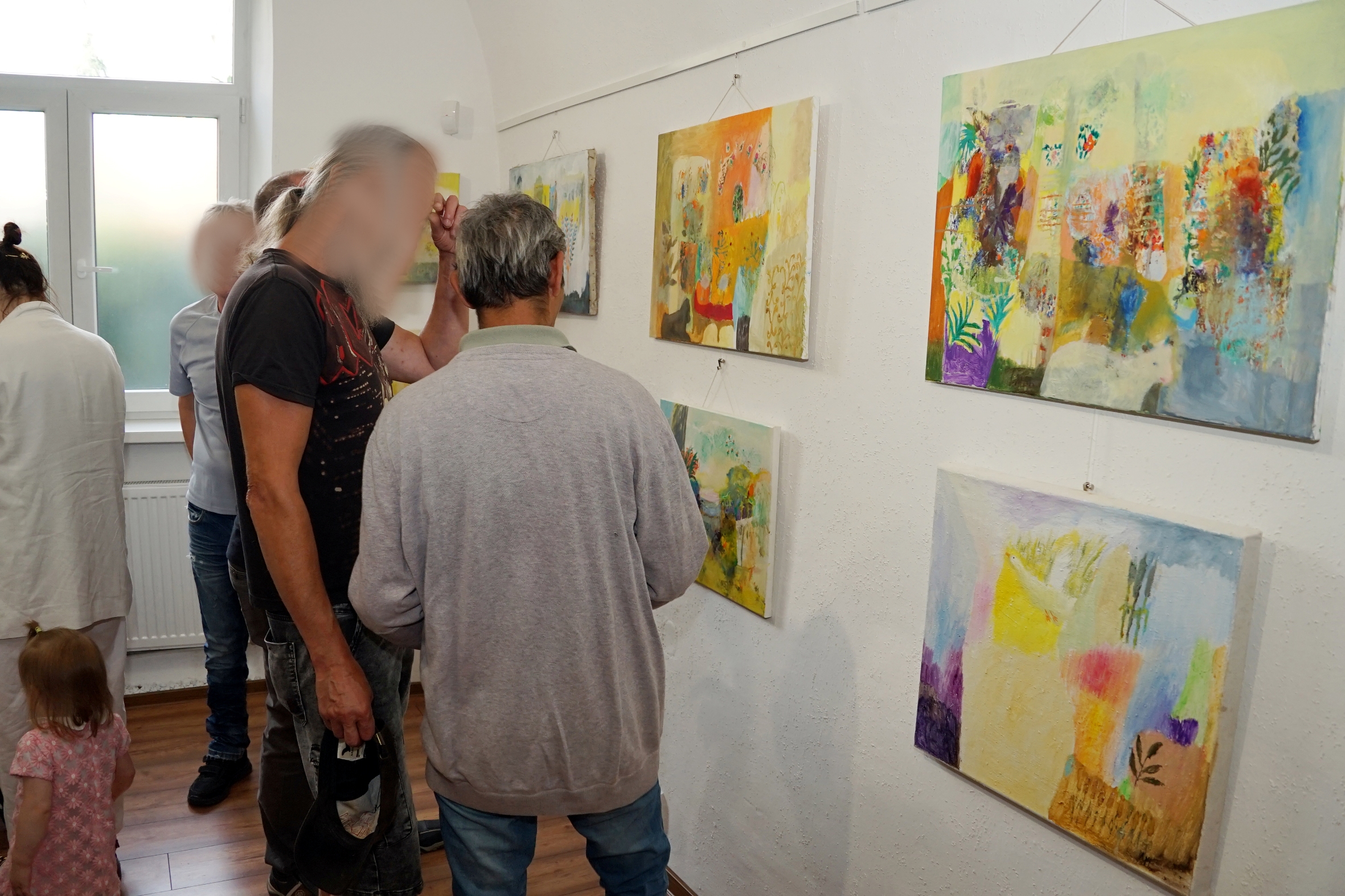 V rámci pasívnej arteterapie, ktorá sa orientuje predovšetkým na vnímanie výtvarného umeleckého diela sme sa zúčastnili na vernisáži výstavy akademickej maliarky Marcely Mitrovej. Vernisáž sa uskutočnila 3.7.2024 v priestoroch Galérie Alexandra Eckerdta v Košiciach.