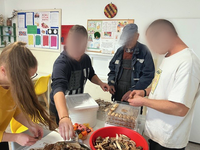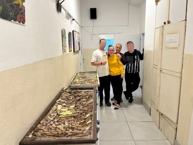 S klientmi nášho zariadenia sme nazbierali : topoľové, brezové a dubové huby, ktoré sme si očistili, nakrájali, vysušili a odložili na prípravu vianočných pokrmov.