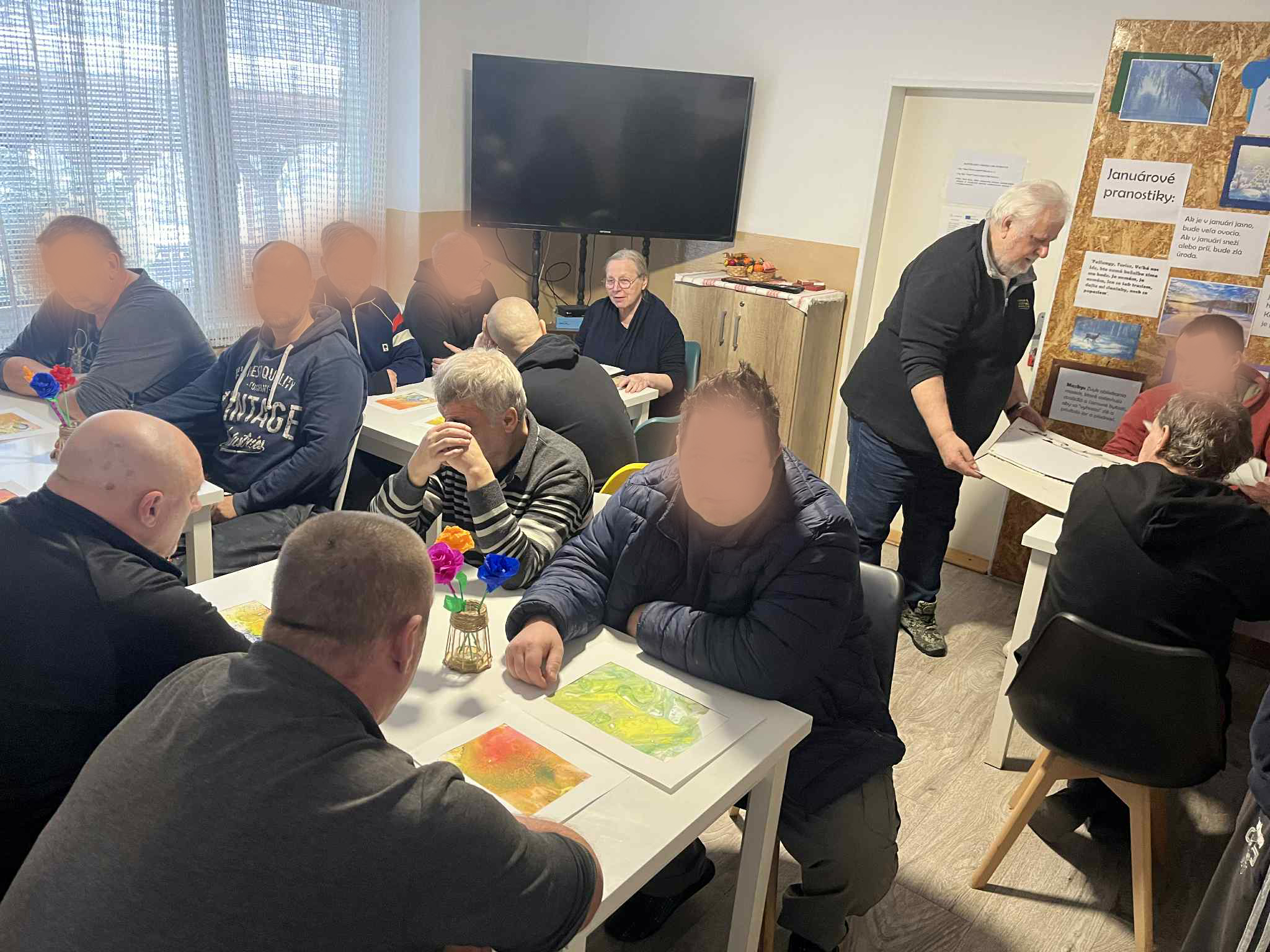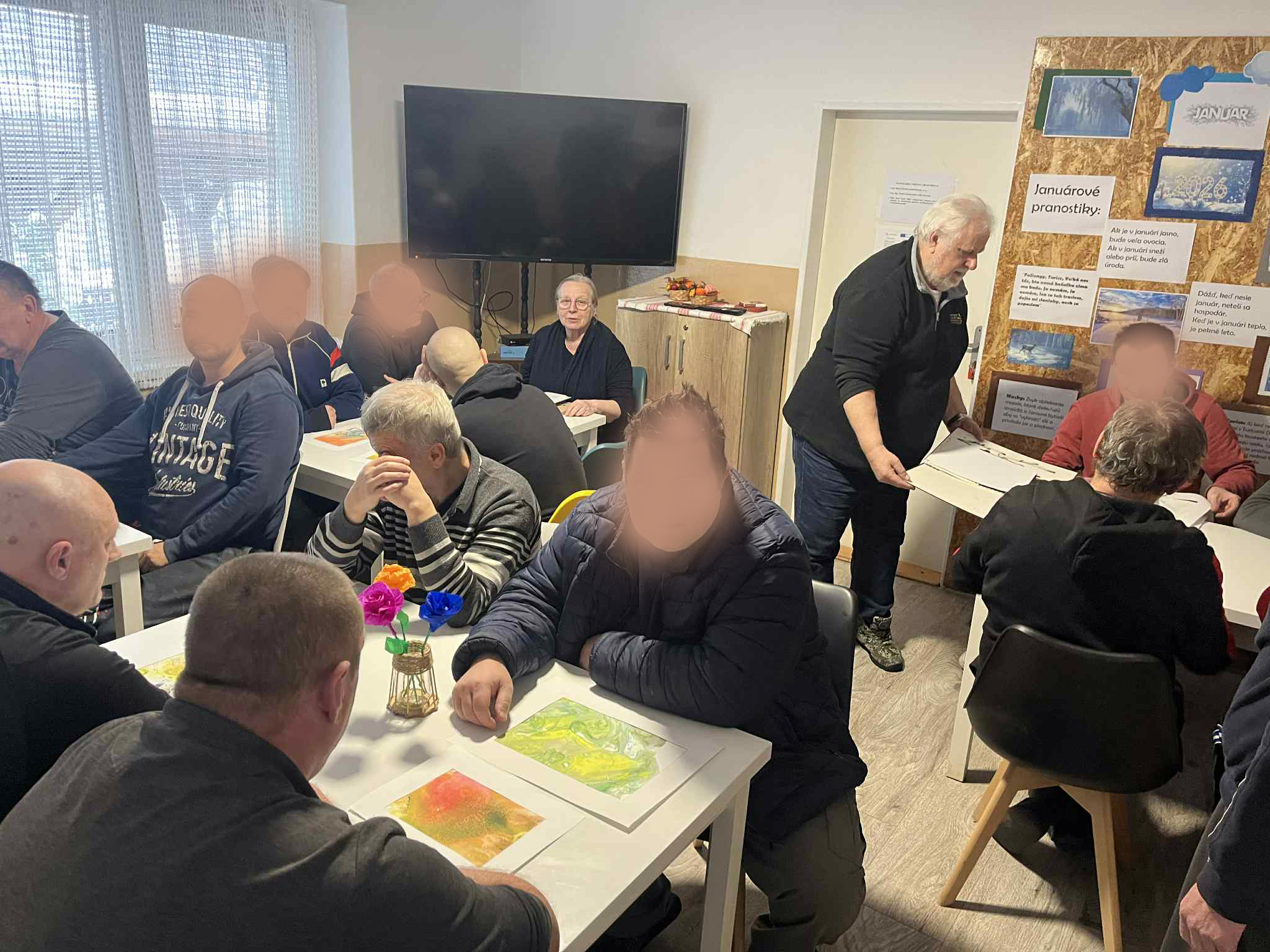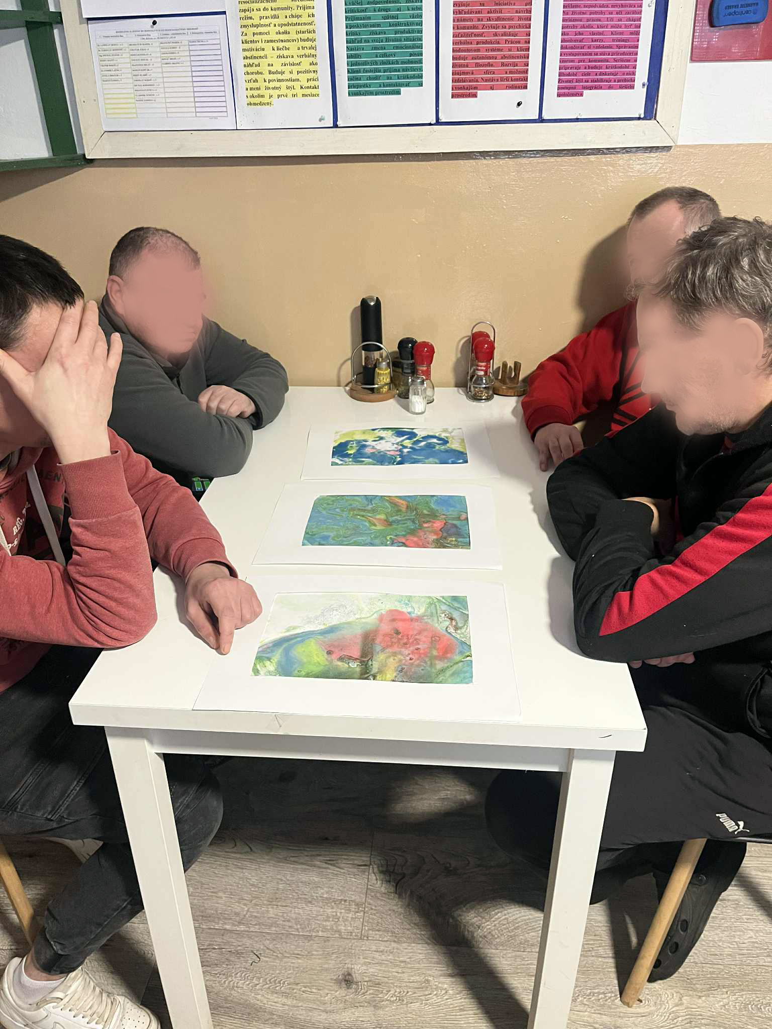 Na arteterapiu v našom zariadení využívame priestorové i plošné výtvarné formy. Z plošných výtvarných foriem je to kresba (mäkkou ceruzou, uhlíkom, rudkou), maľba (vodovými, temperovými i akrylovými farbami), grafika (tlač z plochy-hlavne monotypiu, tlač z výšky-linoleoryt, tlač z textilnej koláže, tlač z kartónovej matrice a tlač z hĺbky -suchú ihlu).