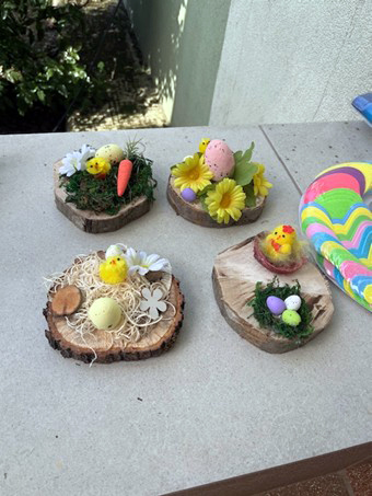 Táto aktivita priniesla nielen príjemne strávený čas, ale aj priestor na rozvoj kreativity, spolupráce a radosti z vlastnoručne vytvorených dekorácií. Klienti sa aktívne zapájali do celého procesu- od samotnej prípravy až po finálne zdobenie. Spoločne sme si pripravili rôzne pomôcky, ako farebné papiere, stužky, vajíčka, lepidlá či prírodné dekorácie. Následne sa každý mohol realizovať podľa vlastnej fantázie a vkusu. Výsledkom boli krásne a originálne veľkonočné ozdoby, ktoré sme následne použili na výzdobu priestorov zariadenia. Táto aktivita nebola len o tvorení, ale aj o rozvíjaní jemnej motoriky a podpore sebavyjadrenia.