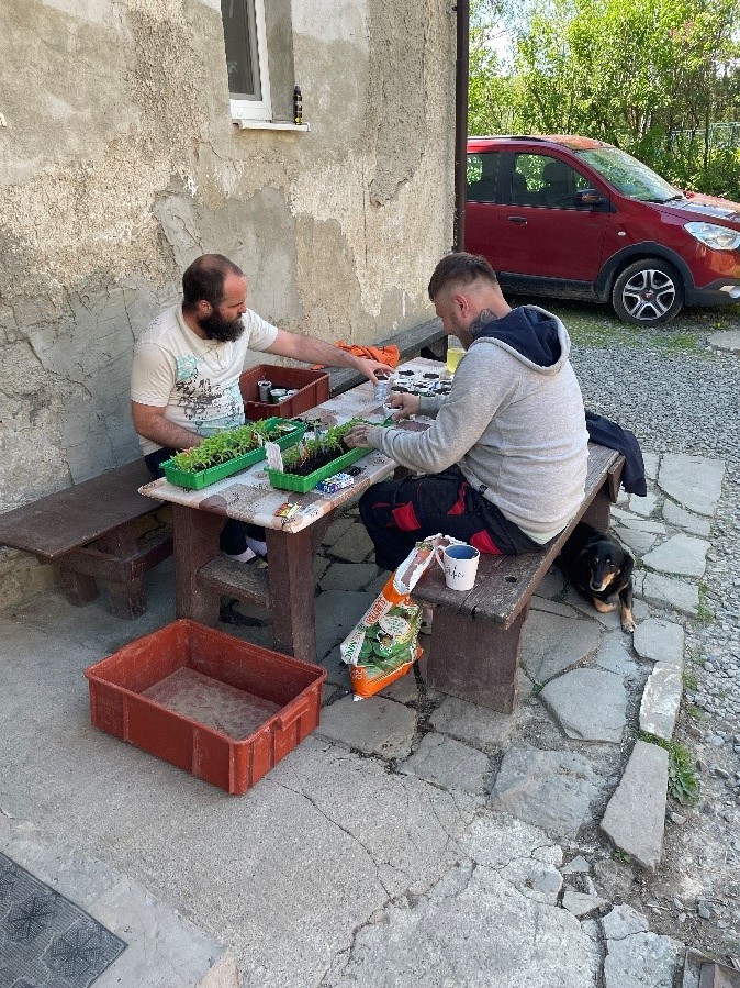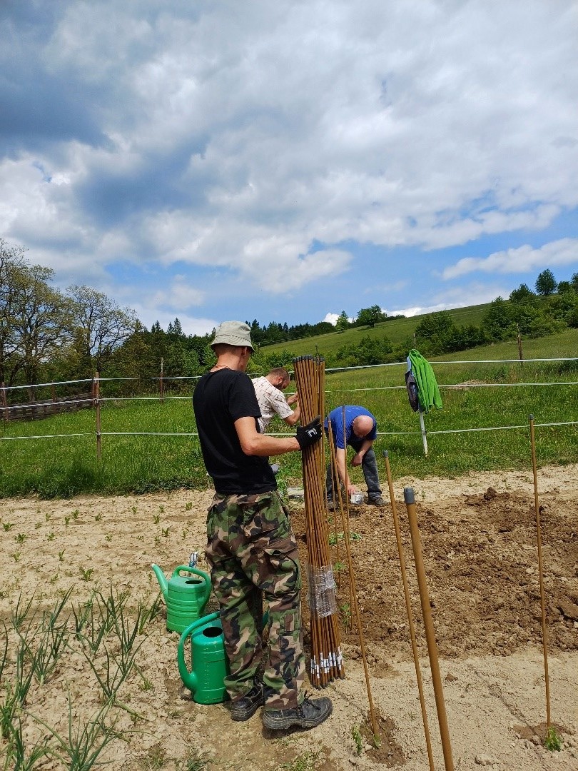 S pracovníkmi pre nácvik pracovných činností sa pripravila pôda na vysádzanie priesad a zemiakov. Realizovala sa príprava fóliovníka či kosenie trávy v areáli budovy. Zároveň sme sa tešili zvieracím prírastkom- zajačikom. Kreatívnosť našich klientov nemá hraníc a vo svojom voľnom čase vyrobili dreveného krokodíla a drevenú opicu, ktoré zdobia predný dvor spolu s jarnými kvetmi. Taktiež sme si pochutnali na prvej jarnej úrode ako reďkovka, špenát a jarná cibuľka, ktoré sme hneď zakomponovali do jedálneho lístka.