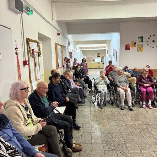 Mnohý z našich prijímateľov sociálnych služieb si spomínali na svojich blízkych, na rodinu, ktorá je ďaleko, ale stále žije v ich srdciach a spomienkach. Pri príležitosti vianočných sviatkov bol pripravený vianočný program s folklórnou skupinou Poruba pod Vihorlatom, ktorá približne v hodinovom programe priblížila vianočné piesne, koledy, vianočné zvyklosti betlehemcov.